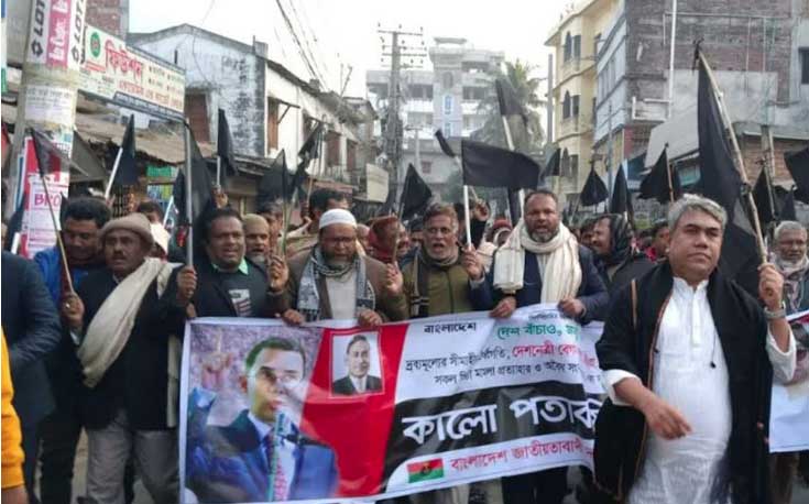 জয়পুরহাটে বিএনপির কালো পতাকা মিছিল