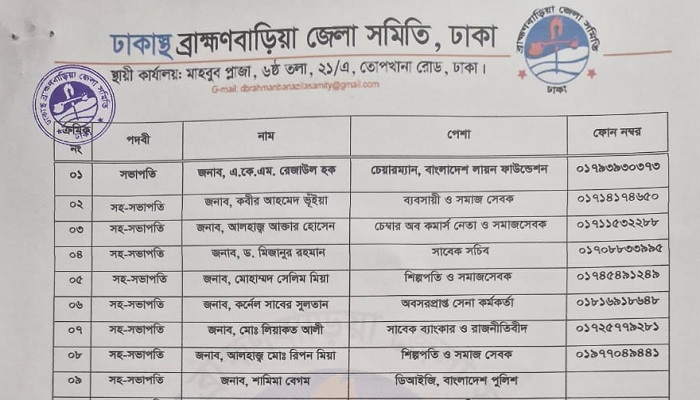 বিজ্ঞপ্তি : ঢাকাস্থ ব্রাহ্মনবাড়িয়া জেলা সমিতির (২০২৪-২০২৫) পূর্ণাঙ্গ কমিটি গঠিত হয়েছে।