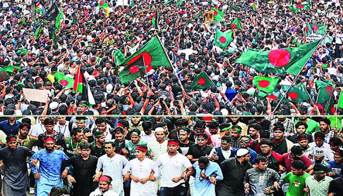 অনলাইন ডেস্ক : পুলিশের বন্দুকের সামনে বুক পেতে দেওয়া আবু সাঈদ। পানি লাগবে কারও? বলতে বলতে বুলেটের আঘাতে মাটিতে লুটিয়ে পড়া মীর মাহফুজুর রহমান মুগ্ধ। শহরের রাস্তায় রিকশার পাদানি ধরে ঝুলতে থাকা গুলিবিদ্ধ তরুণ। ঘরের নিরাপত্তা ভেঙে হেলিকপ্টার থেকে ছুটে আসা বুলেটে ঝরে যাওয়া মা-শিশুর প্রাণের বিনিময়ে অর্জিত স্বাধীনতার এক মাস পূর্তির দিনে আবারও স্লোগানে স্লোগানে প্রকম্পিত হলো রাজধানীর রাজপথ। গতকাল বৈষম্যবিরোধী ছাত্র আন্দোলনের ডাকা শহীদি মার্চ কর্মসূচিতে ‘আবু সাঈদ মুগ্ধ, শেষ হয়নি যুদ্ধ’ ‘সফল হোক সফল হোক, শহীদি মার্চ সফল হোক’ ‘শহীদদের কারণে, ভয় করি না মরণে’ ‘শহীদের রক্ত, বৃথা যেতে দেব না’ স্লোগান দিয়েছেন ছাত্র-জনতা।