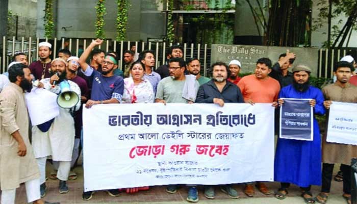 গতকাল জুমার নামাজের সময় থেকে ডেইলি স্টার পত্রিকার প্রধান কার্যালয়ের সামনে এই কর্মসূচি শুরু করা হয়। এ সময় বিক্ষোভকারীরা বলেন- প্রথম আলো ও ডেইলি স্টার পত্রিকা দুটি ভারতীয় আগ্রাসনে সহায়তা করছে। তারা জানিয়েছেন- ভারতীয় আগ্রাসনের বিরুদ্ধে এই কর্মসূচি পালন করা হচ্ছে। ডেইলি স্টার ও প্রথম আলো পত্রিকা দুটি দেশে ভারতীয় আগ্রাসনে সহায়তা ও শাহবাগী বয়ান তৈরিতে প্রত্যক্ষ ভূমিকা রাখছে। বিক্ষোভকারীরা বলেন- ডেইলি স্টার ও প্রথম আলো বাংলাদেশের ধর্মপ্রাণ মুসলিমদের জঙ্গি বানানোর কারিগর হিসেবে কাজ করে। খবর নিয়ে জানা যায়, গণ অধিকার পরিষদের নেতা তারেকের নেতৃত্বে ডেইলি স্টারের সামনের ফুটপাতে বিক্ষোভকারীরা অবস্থান নেন। তাদের প্ল্যাকার্ডে লেখা রয়েছে- ‘আমরা কে/আমরা দিল্লি স্টার/আমরা কী করি?/আমরা শাহবাগী বয়ান উৎপাদন করি।’ ‘এই বাংলাদেশের যত দুর্গতি/অর্ধেক তার আনিয়াছে আনাম-অর্ধেক তার মতি।’