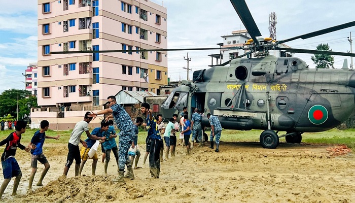 বন্যা পরিস্থিতির উন্নতির জন্য সশস্ত্র বাহিনীর উদ্ধার, ত্রাণ বিতরণ ও চিকিৎসা সেবা চলমান
