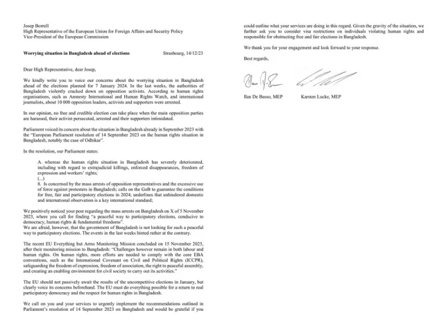 বাংলাদেশে ভিসা নিষেধাজ্ঞা দিতে জোসেপ বোরেলকে আহ্বান