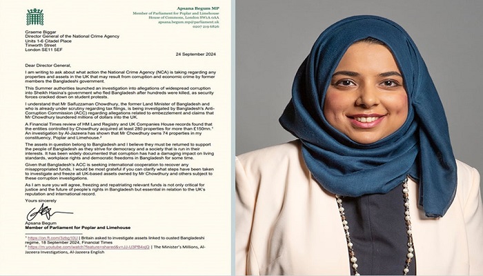 ব্রিটিশ ক্রাইম এজেন্সিকে শেখ হাসিনা সরকারের দুর্নীতি তদন্তে আপসানার চিঠি