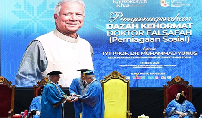 মালয়েশিয়া জাতীয় বিশ্ববিদ্যালয়ের সম্মানসূচক ডক্টরেট ডিগ্রি পেলেন ড. মুহাম্মদ ইউনূস