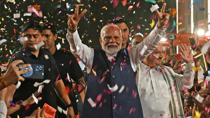 মঙ্গলবার দেশটির ৫৪৩টি আসনের লোকসভা নির্বাচনের ফলাফল প্রকাশিত হয়েছে। যেখানে এনডিএ জোট পেয়েছে ২৯২টি আসন। বিরোধী জোট ‘ইন্ডিয়া’ পেয়েছে ২৩৩টি আসন। অন্যান্য দলের প্রাপ্ত আসনসংখ্যা ১৮টি।