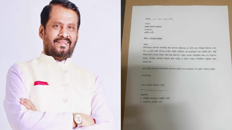 সোমবার বিকালে রওশন এরশাদ বরাবর নিজ স্বাক্ষরিত পদত্যাগপত্র পাঠান তিনি। এতে পারিবারিক ও স্বাস্থ্যগত কারণে পদত্যাগ করছেন বলে উল্লেখ করেন শফিকুল ইসলাম সেন্টু।