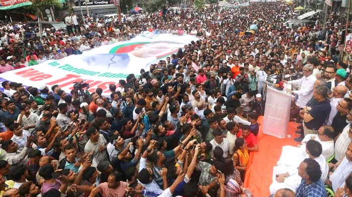 পরে বেলা সাড়ে ৩টার দিকে নয়াপল্টনে কেন্দ্রীয় কার্যালয়ের সামনে থেকে পূর্বঘোষিত বিক্ষোভ মিছিলটি শুরু হয়। মিছিলটি কাকরাইল, মৎস্য ভবন, প্রেস ক্লাব, কার্জন হল, টিএসসি হয়ে শাহবাগে গিয়ে শেষ হয়।