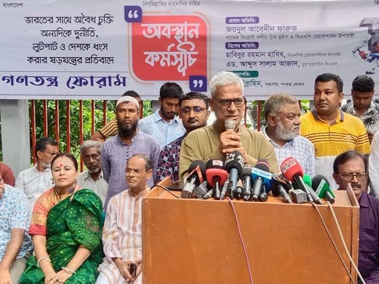 মঙ্গলবার দুপুরে ভারতের সঙ্গে চুক্তি, দুর্নীতি, দেশকে ধ্বংস করার ষড়যন্ত্রের প্রতিবাদে আয়োজিত এক অবস্থান কর্মসূচিতে প্রধান অতিথির বক্তব্যে তিনি এই কথা বলেন। জাতীয় প্রেসক্লাবের সামনে এই অবস্থান কর্মসূচির আয়োজন করে গণতন্ত্র ফোরাম।