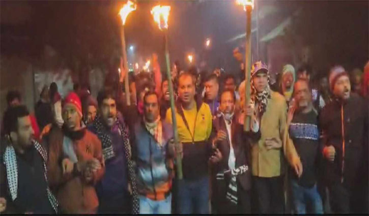 শুক্রবার (০৫ জানুয়ারি) সন্ধ্যা ৭টায় জেলা বিএনপির সাধারন সম্পাদক সাইদুর রহমান বাচ্চুর নেতৃত্বে সিরাজগঞ্জ-কড্ডা আঞ্চলিক শহরের মিরপুর ওয়াপদা থেকে বনবাড়ীয়া পর্যন্ত মশাল মিছিল করা হয়। মিছিলে ডামি নির্বাচন বর্জনসহ হরতালের সমর্থনে নানা ধরনের শ্লোগান দেয়া হয়।