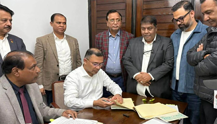 ঢাকা-১৭ এবং বগুড়া-৬ নির্বাচনী আসনের মনোনয়নপত্রে স্বাক্ষর করলেন তারেক রহমান
